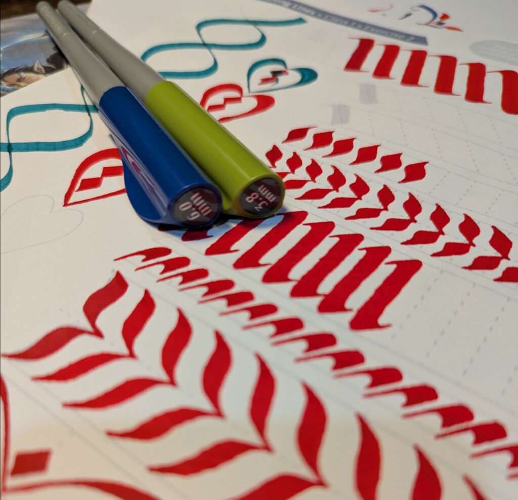 - Pilot Parallel Pens (ideally 6.0mm and 3.8mm sizes, but if you have other sizes, those are fine!)